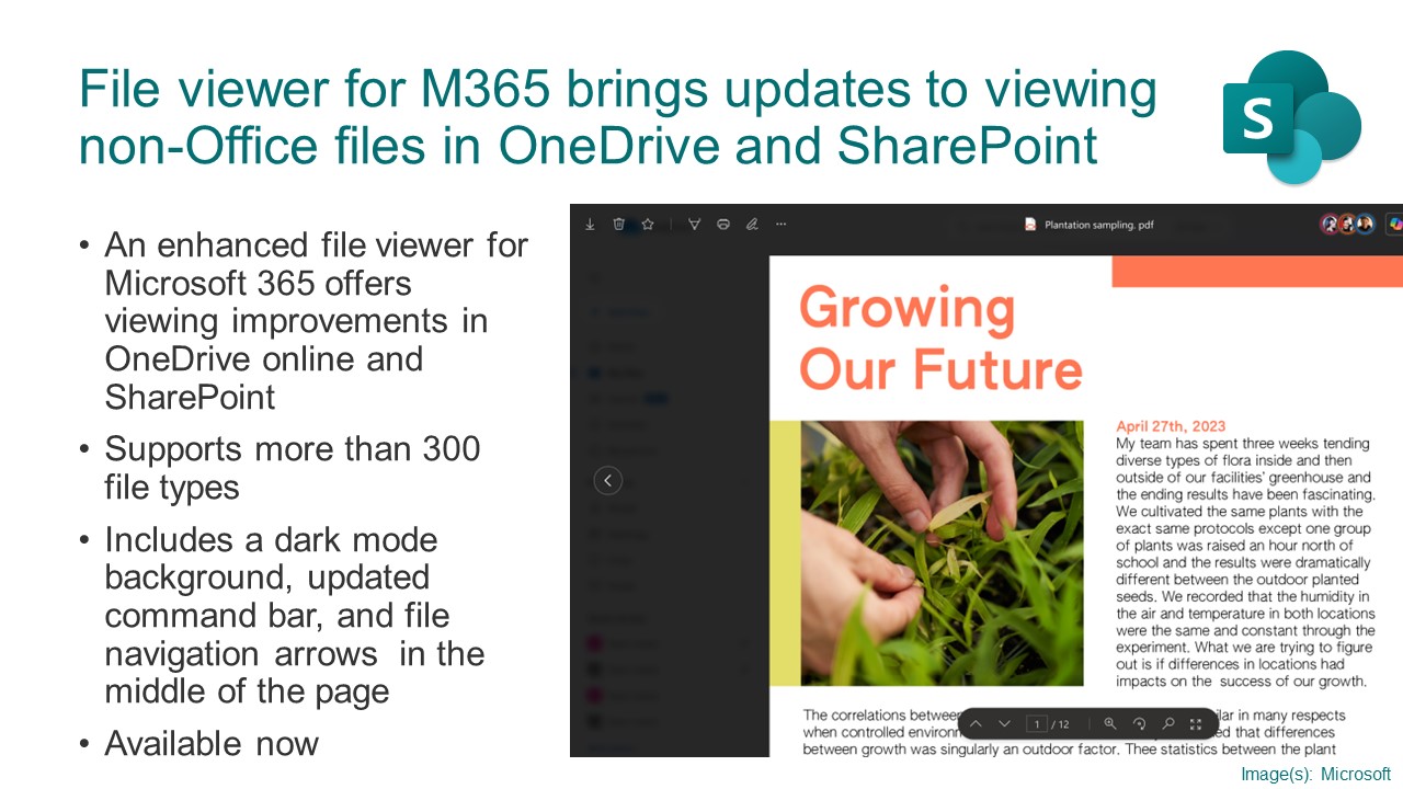 An enhanced file viewer for Microsoft 365 offers viewing improvements in OneDrive online and SharePoint. Available now.